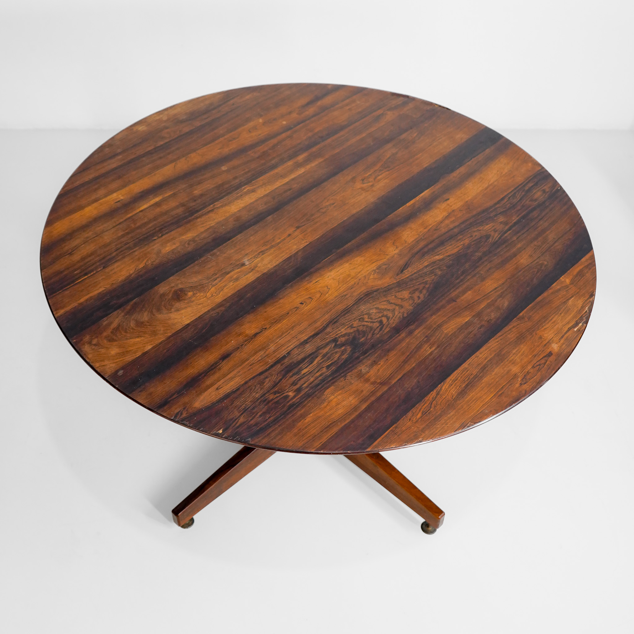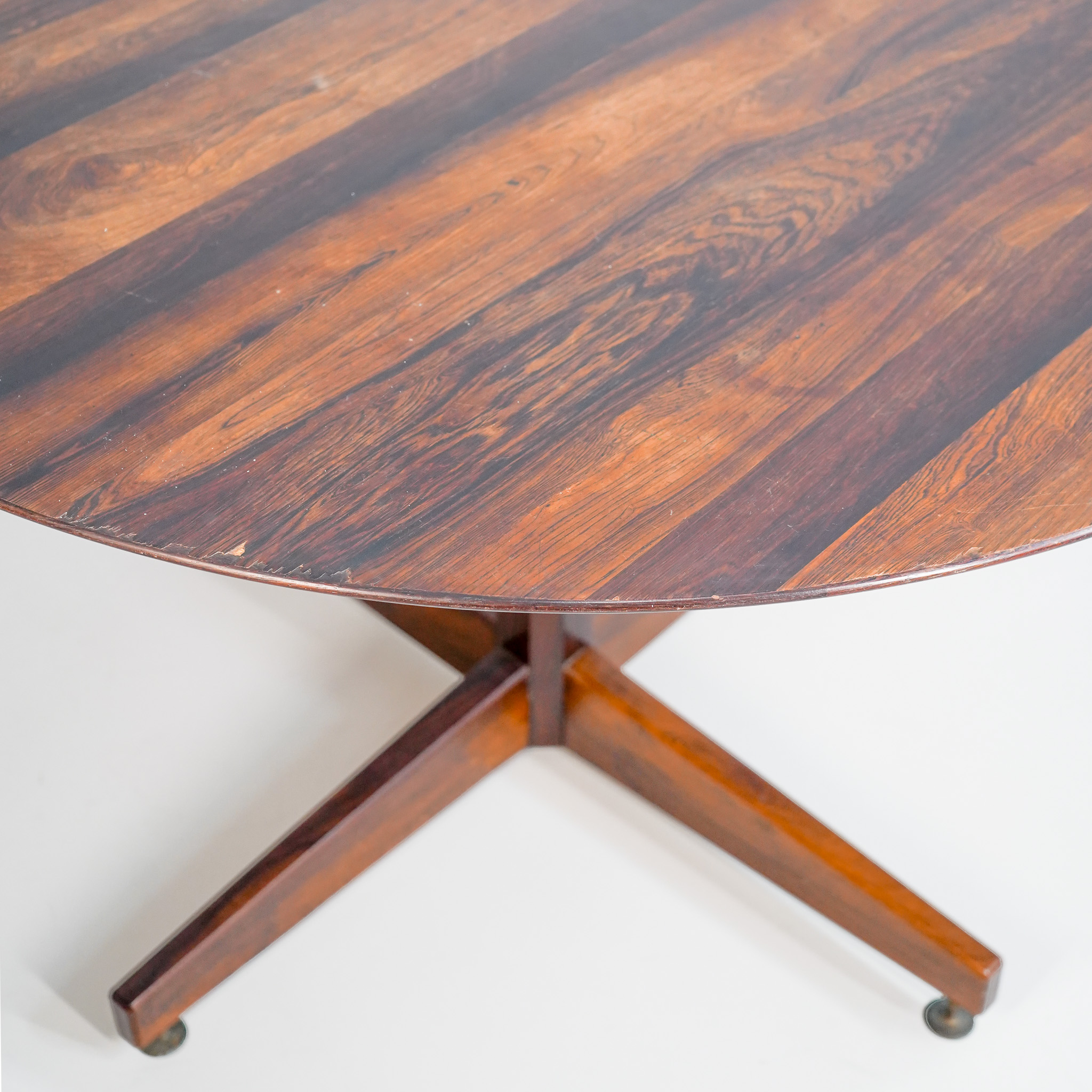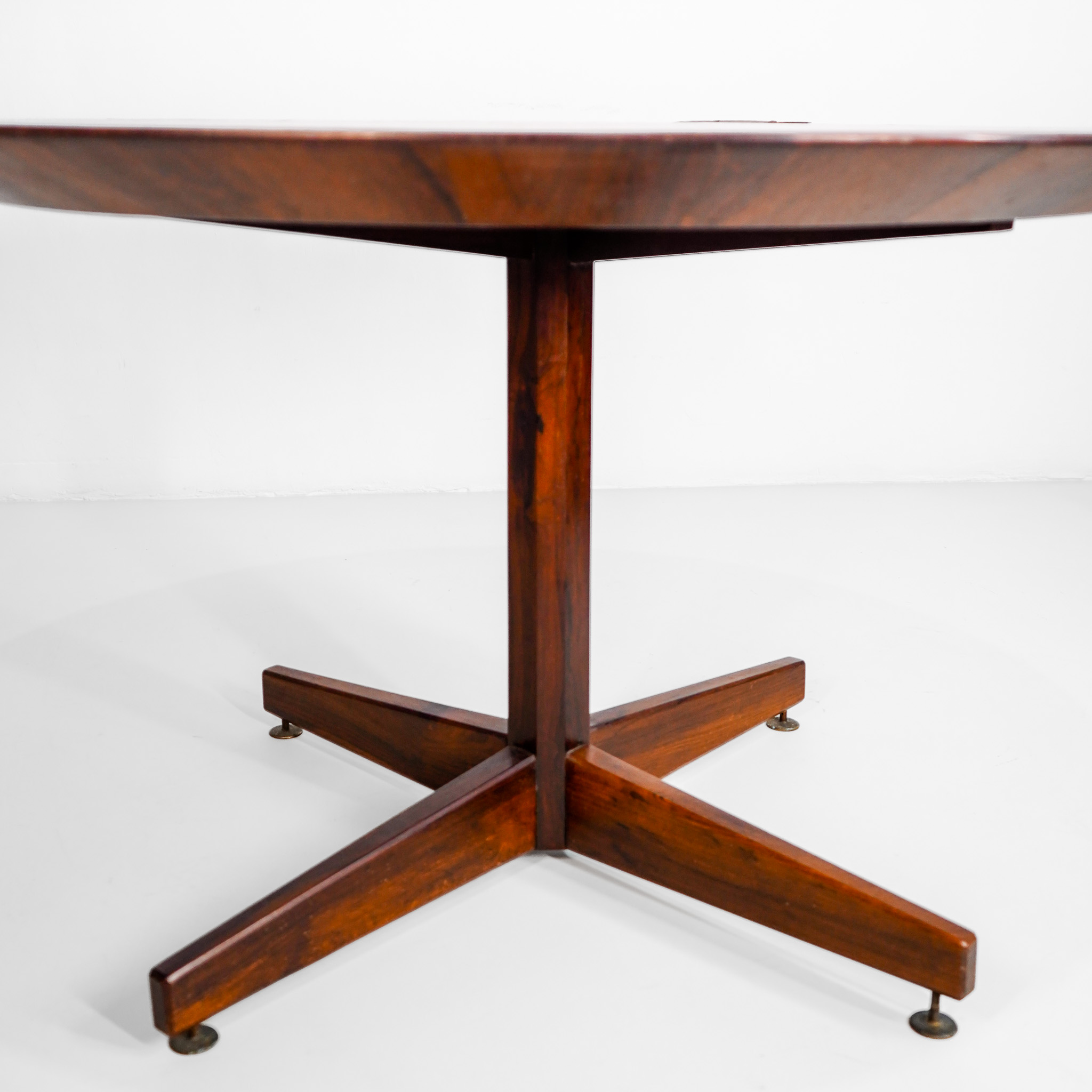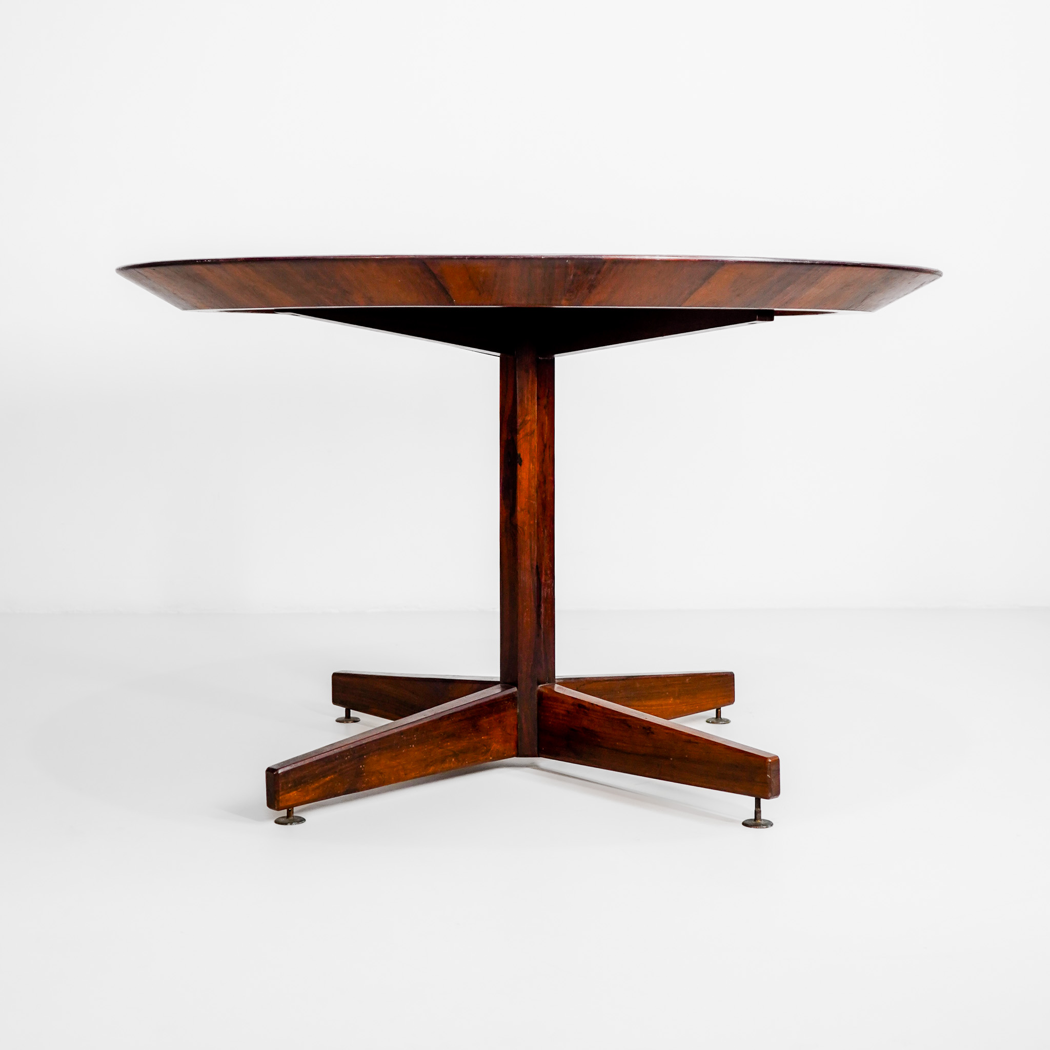 Mesa jantar/jogos em Jacarandá, década de 60, pé em metal dourado com regulagem