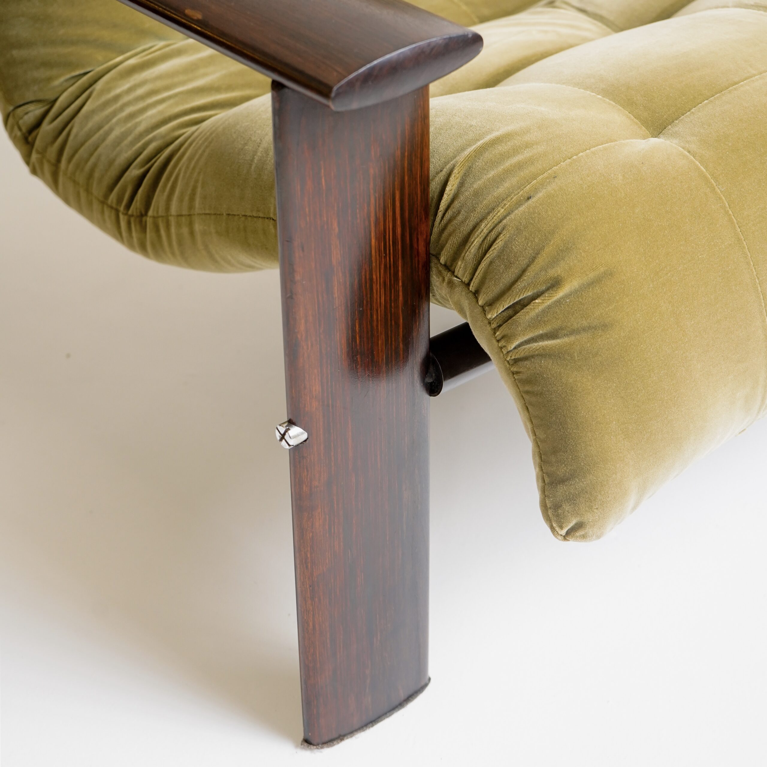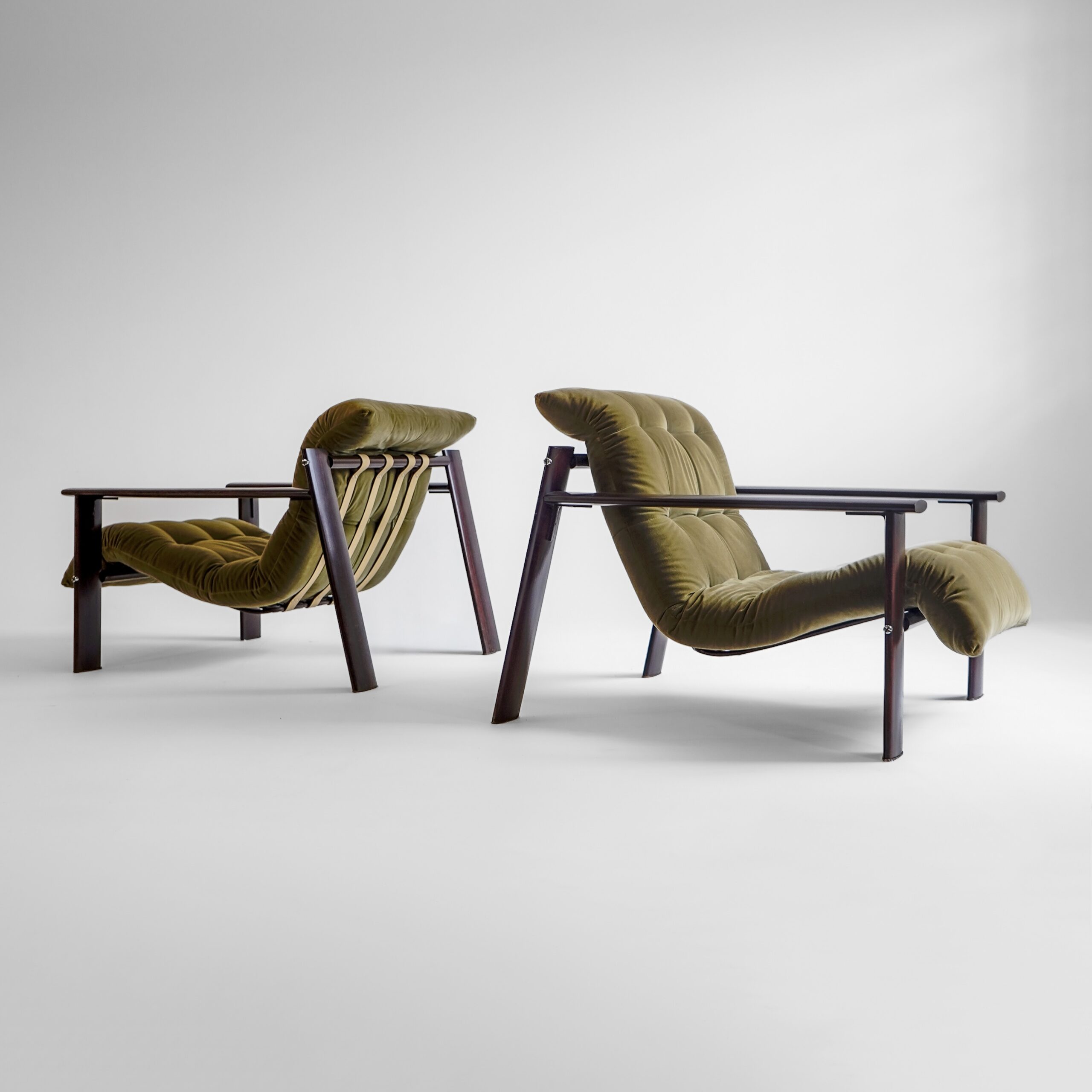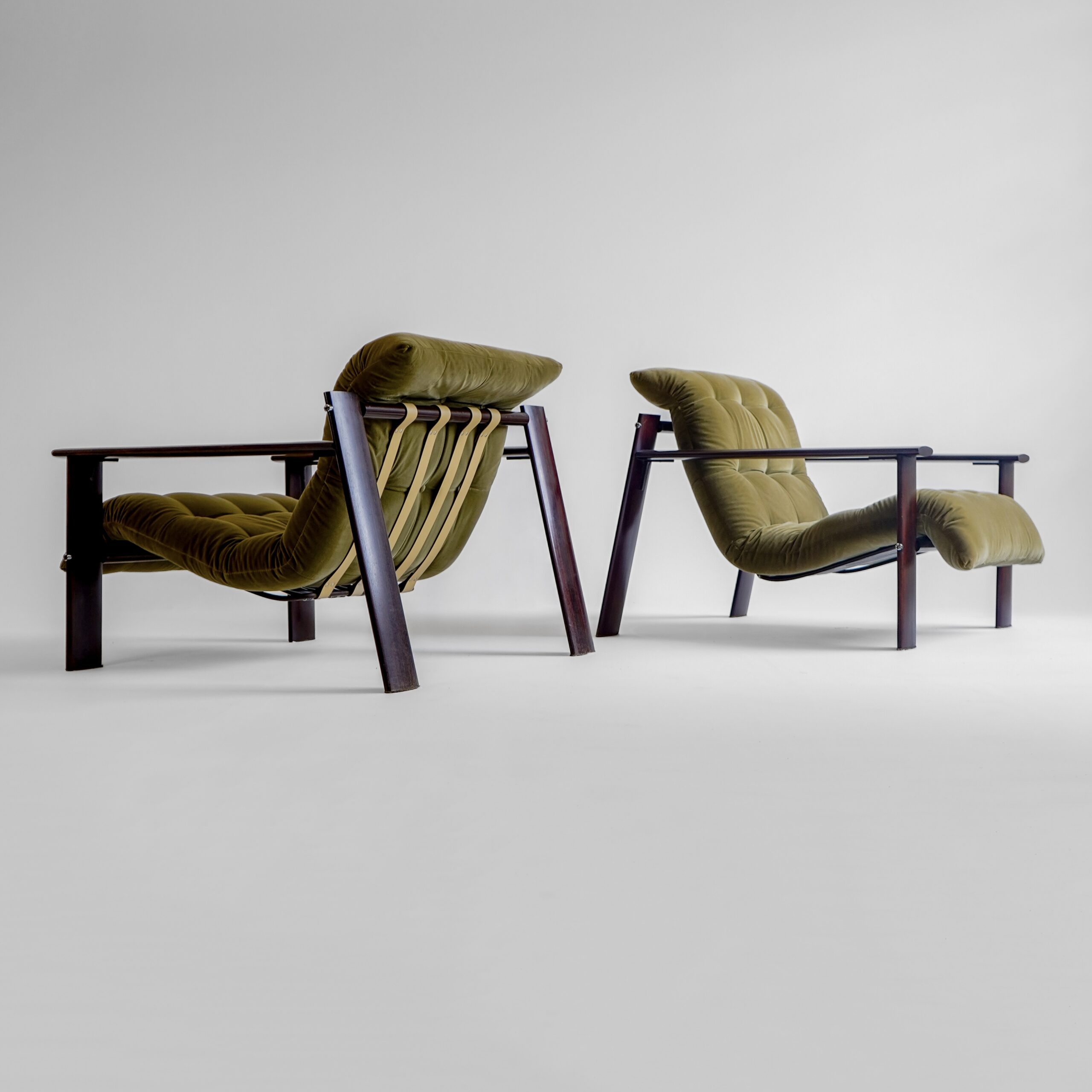 Percival Lafer – Raro par de Poltronas MP-129, 1970 em madeira de lei maciça, metal e percintas em couro.